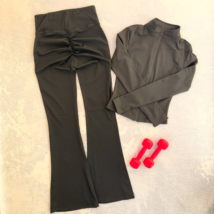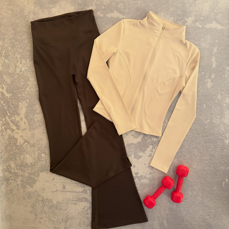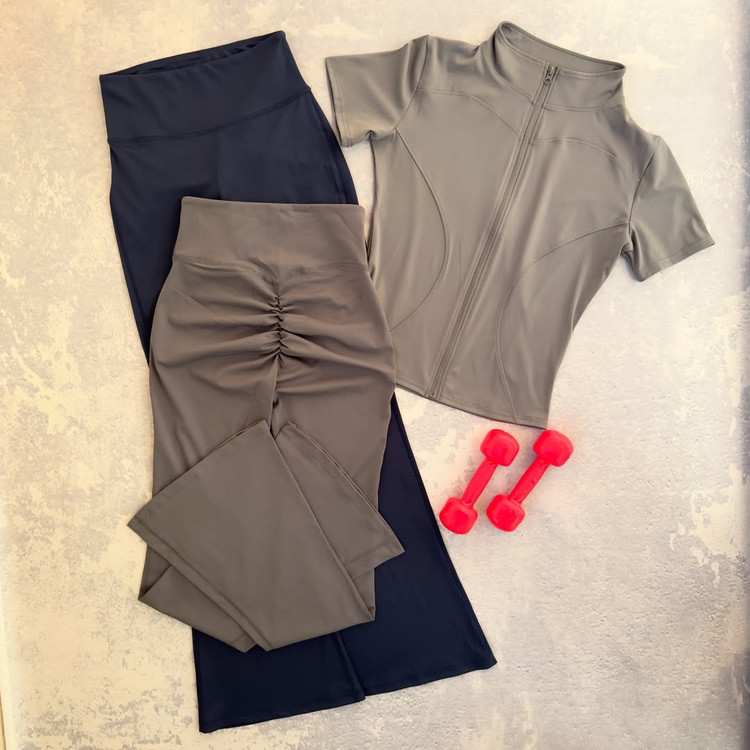 لگ اسپندکس گرم بالا کمر محکم و گنی پشت چیندار برش کمر به صورت هفتی دوخت فلت.
