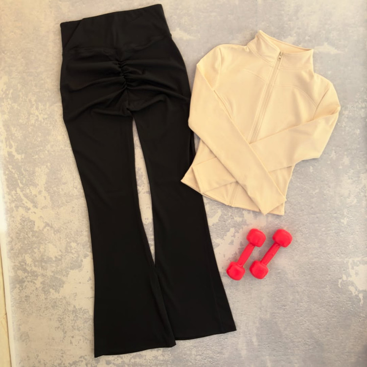لگ اسپندکس گرم با کمر محکم و گنی پشت چیندار برش کمر به صورت هفتی دوخت فلت.